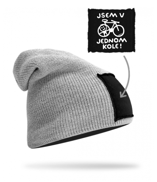 Pletená čepice BEANIE unisex s potiskem 1362 JSEM V JEDNOM KOLE v barvě GREY/BLACK