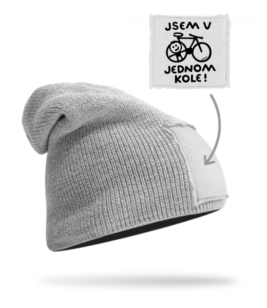 Pletená čepice BEANIE unisex s potiskem 1362 JSEM V JEDNOM KOLE v barvě GREY/WHITE