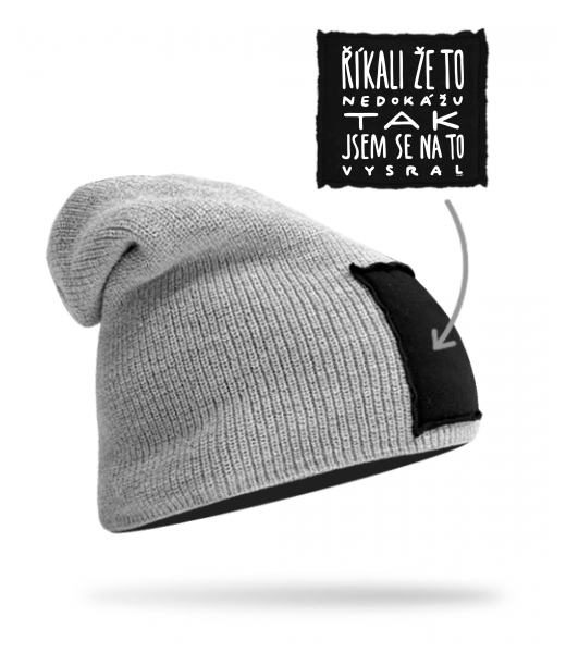 Pletená čepice BEANIE unisex s potiskem 1366 ŘÍKALI ŽE TO NEDOKÁŽU TAK JSEM SE NA TO VYSRAL v barvě GREY/BLACK