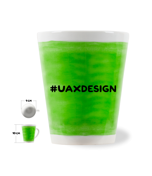 Originální HRNEK LATTE UAX! s uchem o objemu 0,25L se stane stylovým doplňkem do Vašich domácností. Mix & Match - Vybírej z mnoha originálních potisků a kombinuj anilinové barvy podkladu. HRNEK LATTE 0,25L vyrábíme tak, že nejdříve provádíme vytištění předlohy potisku na přenosový papír na stroji Mimaki TS5 a následnou sublimaci pomoci sublimačního lisu. Tiskneme na hrnky se spec. povrchovou úpravou pro potisk, kdy základní barva hrnku je bílá.