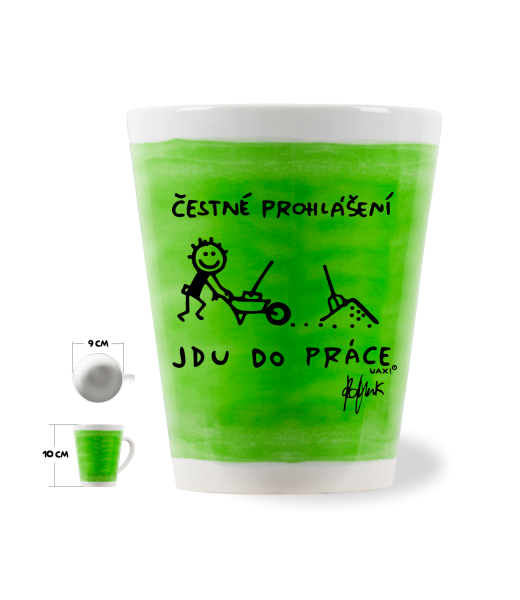 HRNEK LATTE o objemu 0,25L s potiskem 1304 ČESTNÉ PROHLÁŠENÍ JDU DO PRÁCE v barvě PARROT GREEN
