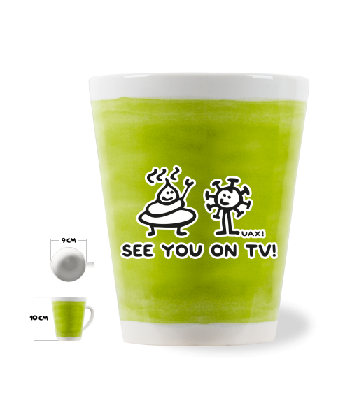 HRNEK LATTE o objemu 0,25L s potiskem 1306 SEE YOU ON TV v barvě GREEN LIMET
