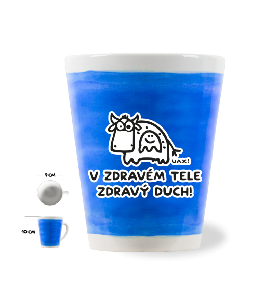 HRNEK LATTE o objemu 0,25L s potiskem 1309 V ZDRAVÉM TELE ZDRAVÝ DUCH v barvě DARK BLUE