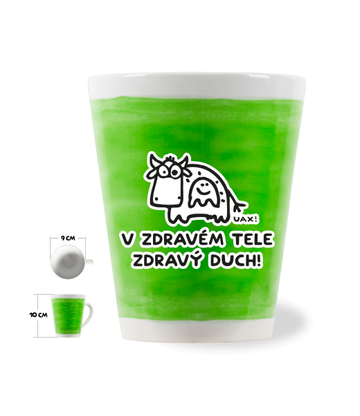 HRNEK LATTE o objemu 0,25L s potiskem 1309 V ZDRAVÉM TELE ZDRAVÝ DUCH v barvě PARROT GREEN