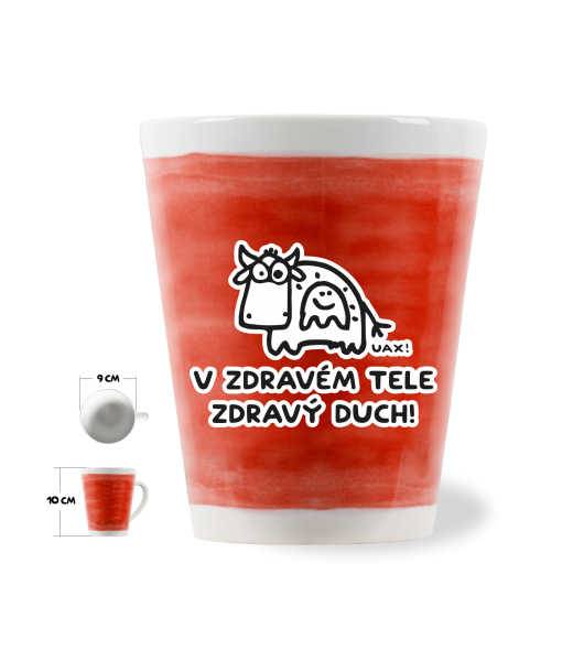 HRNEK LATTE o objemu 0,25L s potiskem 1309 V ZDRAVÉM TELE ZDRAVÝ DUCH v barvě TOMATO