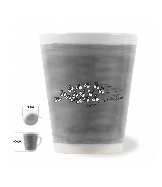 HRNEK LATTE o objemu 0,25L s potiskem 505 LETNI CYKLONA v barvě GRAY