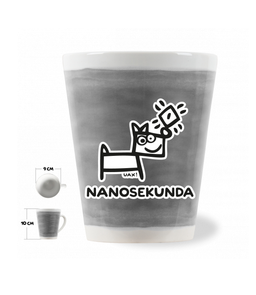 HRNEK LATTE o objemu 0,25L s potiskem 516 NANOSEKUNDA v barvě GRAY