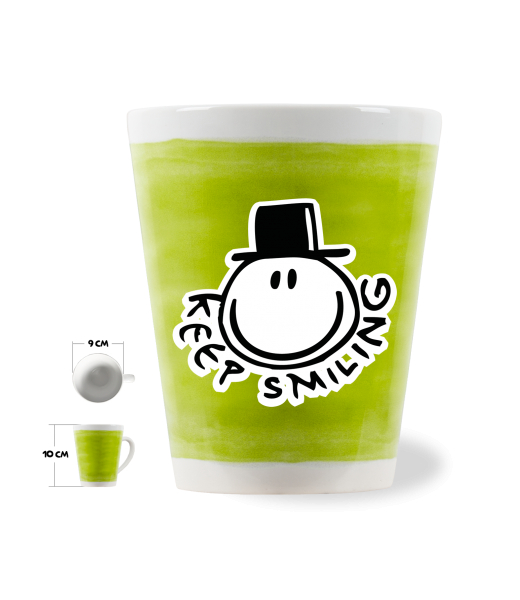 HRNEK LATTE o objemu 0,25L s potiskem 517 KEEP SMILING v barvě GREEN LIMET