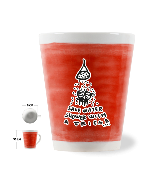 HRNEK LATTE o objemu 0,25L s potiskem 519 SAVE WATER v barvě TOMATO