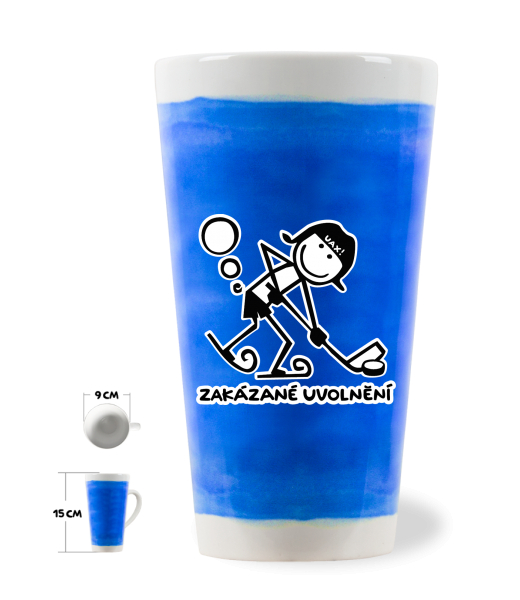 HRNEK LATTE UAX! o objemu 0,4L s potiskem 1059 ZAKÁZANÉ UVOLNĚNÍ v barvě DARK BLUE