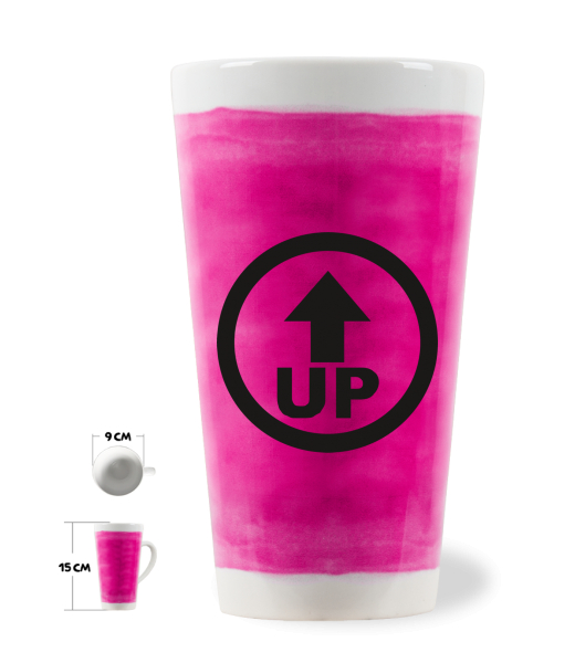 Originální HRNEK LATTE UAX! s uchem o objemu 0,4L se stane stylovým doplňkem do Vašich domácností. Mix & Match - Vybírej z mnoha originálních potisků a kombinuj anilinové barvy podkladu. HRNEK LATTE 0,4L vyrábíme tak, že nejdříve provádíme vytištění předlohy potisku na přenosový papír na stroji Mimaki TS5 a následnou sublimaci pomoci sublimačního lisu. Tiskneme na hrnky se spec. povrchovou úpravou pro potisk, kdy základní barva hrnku je bílá.