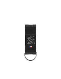 Klíčenka UAX! s jedním kroužkem na klíče. Gumová etiketa UAX!