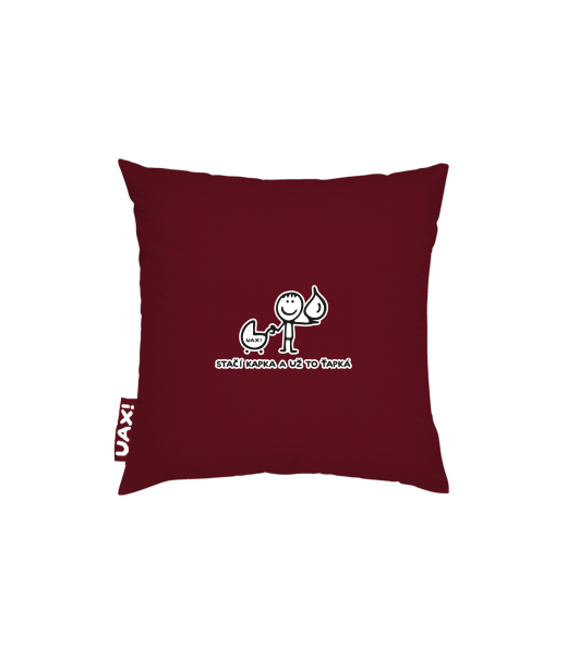 Povlak na polštář 40x40 s potiskem 1081 STAČÍ KAPKA A UŽ TO ŤAPKÁ v barvě DARK RED