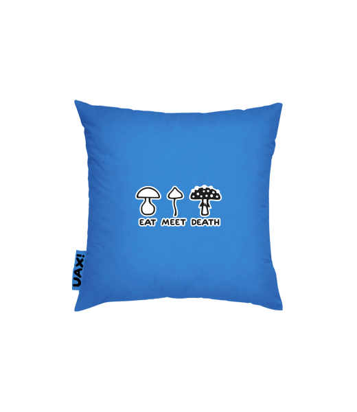 Vyrábíme udržitelné oblečení UAX! - ručně šité v Česku uaxDoplňky uaxVšechny produktyPolštářePOVLAK NA POLŠTÁŘ 40x40potisk 1177 - EAT MEET DEATHCAPRI BLUE