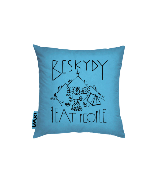 Vyrábíme udržitelné oblečení UAX! - ručně šité v Česku uaxDoplňky uaxVšechny produktyPolštářePOVLAK NA POLŠTÁŘ 40x40potisk 1241 - I EAT PEOPLE BESKYDYBLUE ATOLL