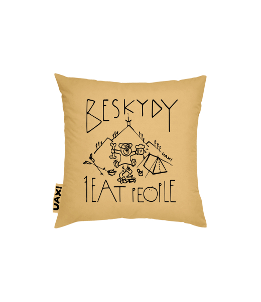 Vyrábíme udržitelné oblečení UAX! - ručně šité v Česku uaxDoplňky uaxVšechny produktyPolštářePOVLAK NA POLŠTÁŘ 40x40potisk 1241 - I EAT PEOPLE BESKYDYMUSTARD