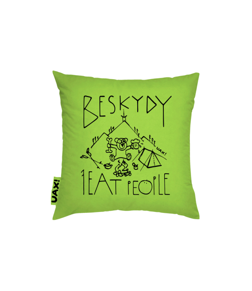 Vyrábíme udržitelné oblečení UAX! - ručně šité v Česku uaxDoplňky uaxVšechny produktyPolštářePOVLAK NA POLŠTÁŘ 40x40potisk 1241 - I EAT PEOPLE BESKYDYPARROT GREEN