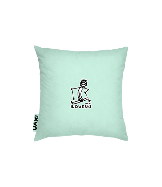 Povlak na polštář 50x50 s potiskem 1122 I LOVE SKI v barvě MINT