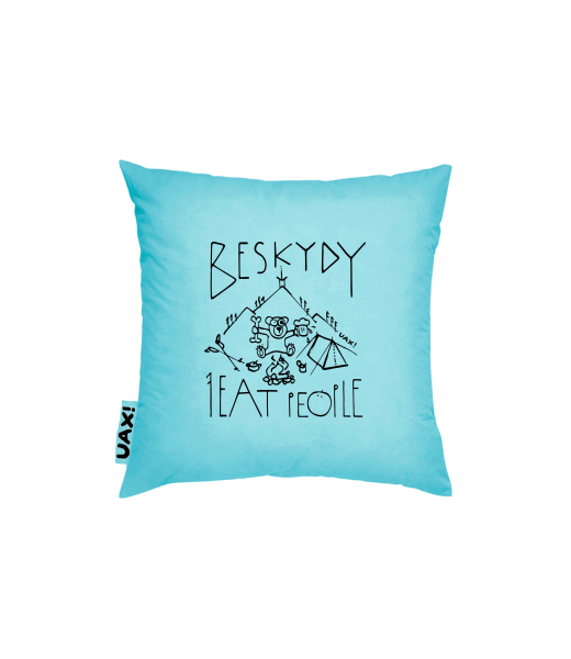 Vyrábíme udržitelné oblečení UAX! - ručně šité v Česku uaxDoplňky uaxVšechny produktyPolštářePOVLAK NA POLŠTÁŘ 50x50potisk 1241 - I EAT PEOPLE BESKYDYPASTEL BLUE