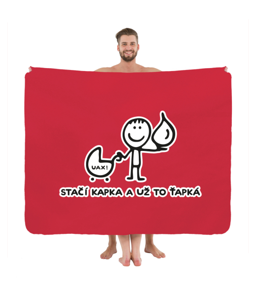 Originální deka na piknik s potiskem 1081 STAČÍ KAPKA A UŽ TO ŤAPKÁ v barvě RED