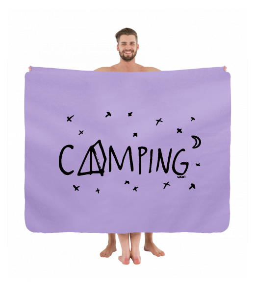 Originální deka na piknik s potiskem 1112 CAMPING v barvě LAVENDER