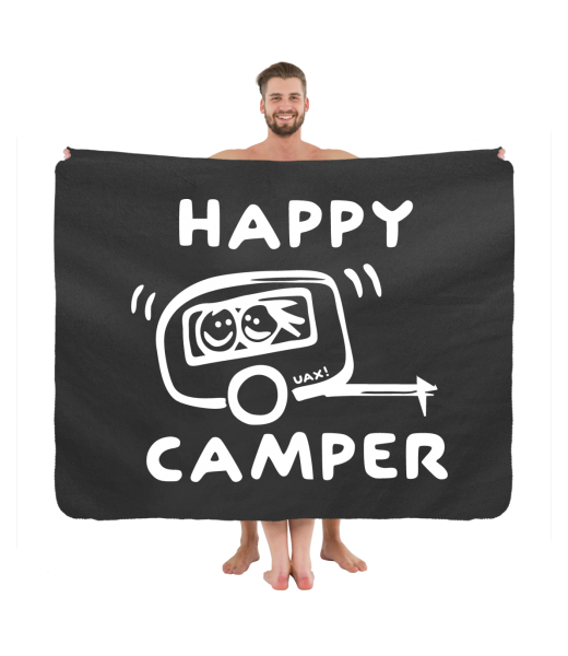 Originální deka na piknik s potiskem 1116 HAPPY CAMPER v barvě BLACK