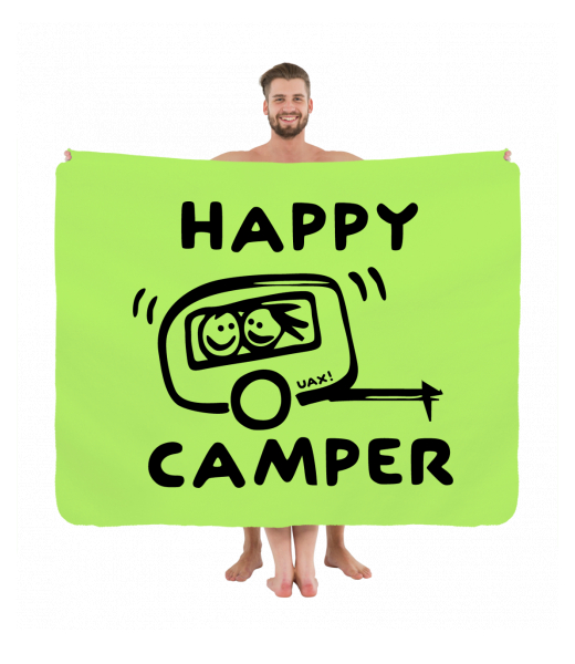 Originální deka na piknik s potiskem 1116 HAPPY CAMPER v barvě FLUO GREEN