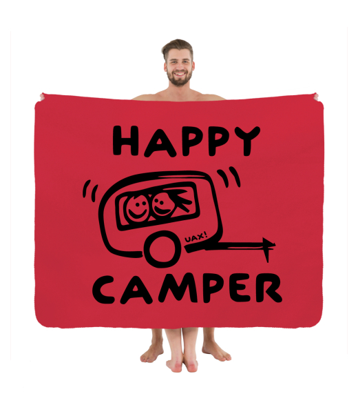 Originální deka na piknik s potiskem 1116 HAPPY CAMPER v barvě RED