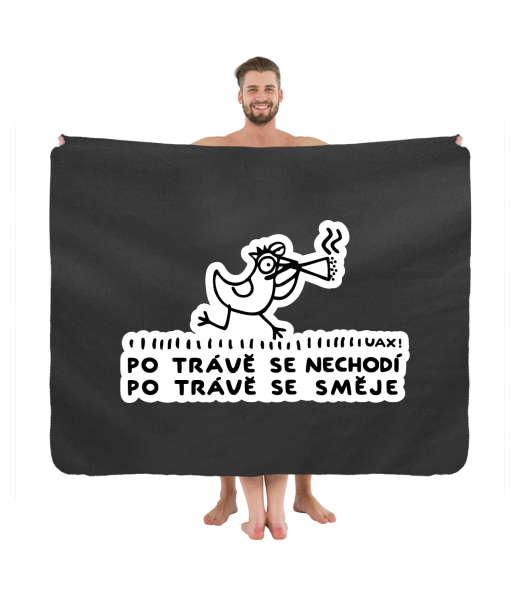 Originální deka na piknik s potiskem 1118 PO TRÁVĚ SE SMĚJE v barvě BLACK