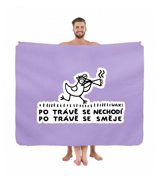 Originální deka na piknik s potiskem 1118 PO TRÁVĚ SE SMĚJE v barvě LAVENDER