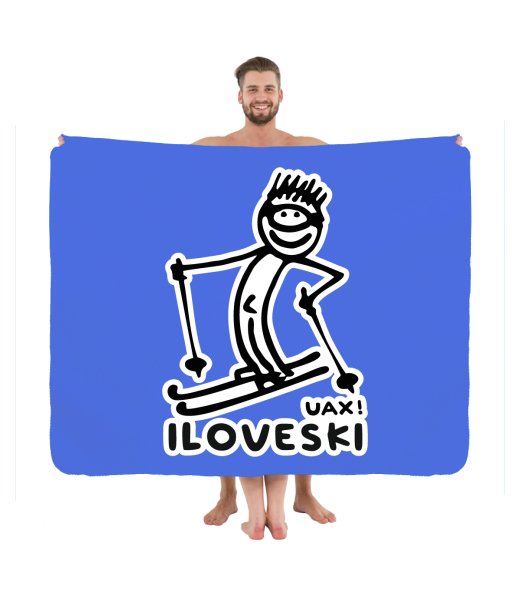 Originální deka na piknik s potiskem 1122 I LOVE SKI v barvě CAPRI BLUE