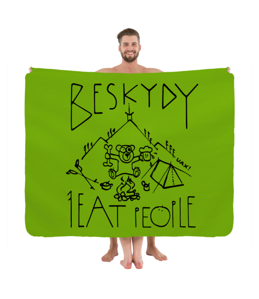 Originální deka na piknik s potiskem 1241 I EAT PEOPLE BESKYDY v barvě PARROT GREEN