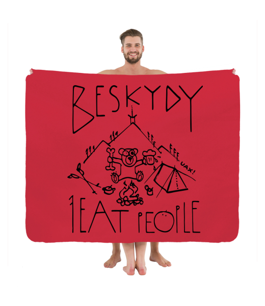 Originální deka na piknik s potiskem 1241 I EAT PEOPLE BESKYDY v barvě RED