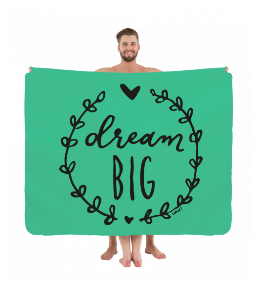 Vyrábíme udržitelné oblečení UAX! - ručně šité v Česku uaxDoplňky uaxVšechny produktyRučníky a osuškyPIKNIK DEKA S POTISKEMpotisk 1286 - DREAM BIGEUCALYPTO GREEN