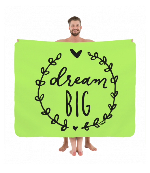 Vyrábíme udržitelné oblečení UAX! - ručně šité v Česku uaxDoplňky uaxVšechny produktyRučníky a osuškyPIKNIK DEKA S POTISKEMpotisk 1286 - DREAM BIGFLUO GREEN