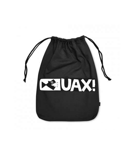Praktický bavlněný obal na přezůvky 30x40cm s potiskem UAX! Na čelní stranu si můžete vybrat jeden z originálních potisků s optimistickým pohledem na svět, podle aktuální nabídky. Látkový pytlík velký UAX! jistě zaujme Vaše okolí a také účelně poslouží.