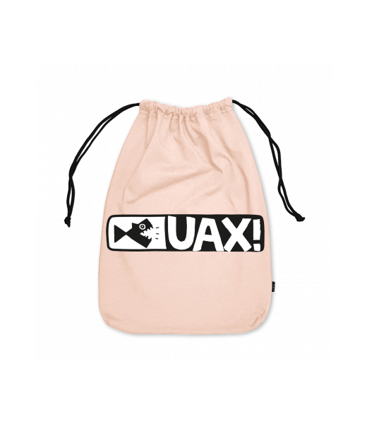 Praktický bavlněný obal na přezůvky 30x40cm s potiskem UAX! Na čelní stranu si můžete vybrat jeden z originálních potisků s optimistickým pohledem na svět, podle aktuální nabídky. Látkový pytlík velký UAX! jistě zaujme Vaše okolí a také účelně poslouží.