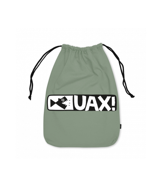 Praktický bavlněný obal na přezůvky 30x40cm s potiskem UAX! Na čelní stranu si můžete vybrat jeden z originálních potisků s optimistickým pohledem na svět, podle aktuální nabídky. Látkový pytlík velký UAX! jistě zaujme Vaše okolí a také účelně poslouží.