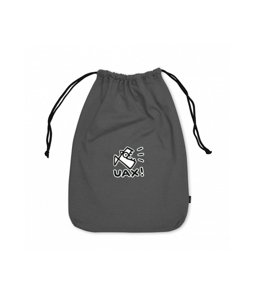 Praktický bavlněný obal na přezůvky 30x40cm s potiskem UAX! Na čelní stranu si můžete vybrat jeden z originálních potisků s optimistickým pohledem na svět, podle aktuální nabídky. Látkový pytlík velký UAX! jistě zaujme Vaše okolí a také účelně poslouží.