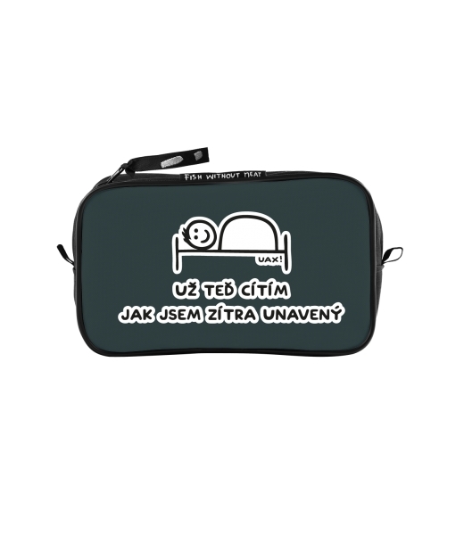 Unisex UAX kosmetická taška velikosti M s potiskem a kapsou s potiskem 1200 UŽ TEĎ CÍTÍM JAK JSEM ZÍTRA UNAVENÝ v barvě GREY INK