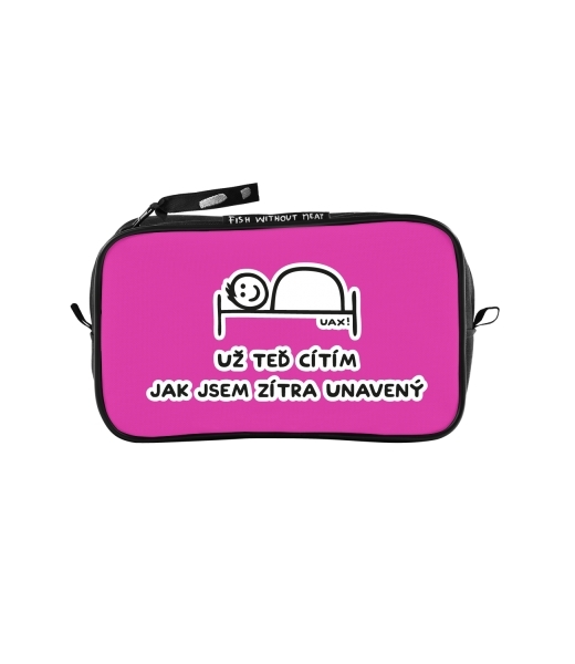 Unisex UAX kosmetická taška velikosti M s potiskem a kapsou s potiskem 1200 UŽ TEĎ CÍTÍM JAK JSEM ZÍTRA UNAVENÝ v barvě INDIAN LILA