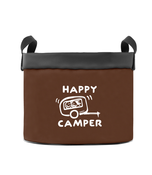 Designový obal na květináč 45cm s potiskem 1116 HAPPY CAMPER v barvě BROWN SUGAR