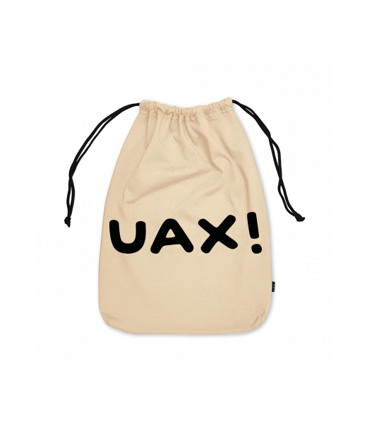 Praktický bavlněný obal na přezůvky 30x40cm s potiskem UAX! Na čelní stranu si můžete vybrat jeden z originálních potisků s optimistickým pohledem na svět, podle aktuální nabídky. Látkový pytlík velký UAX! jistě zaujme Vaše okolí a také účelně poslouží.
