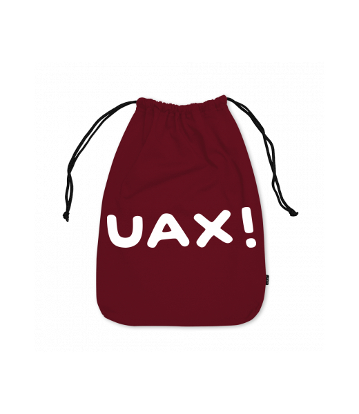 Praktický bavlněný obal na přezůvky 30x40cm s potiskem UAX! Na čelní stranu si můžete vybrat jeden z originálních potisků s optimistickým pohledem na svět, podle aktuální nabídky. Látkový pytlík velký UAX! jistě zaujme Vaše okolí a také účelně poslouží.