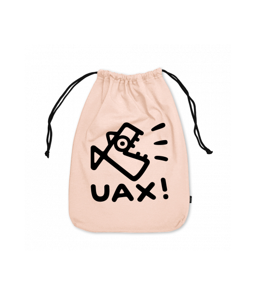 Praktický bavlněný obal na přezůvky 30x40cm s potiskem UAX! Na čelní stranu si můžete vybrat jeden z originálních potisků s optimistickým pohledem na svět, podle aktuální nabídky. Látkový pytlík velký UAX! jistě zaujme Vaše okolí a také účelně poslouží.