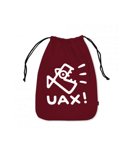 Praktický bavlněný obal na přezůvky 30x40cm s potiskem UAX! Na čelní stranu si můžete vybrat jeden z originálních potisků s optimistickým pohledem na svět, podle aktuální nabídky. Látkový pytlík velký UAX! jistě zaujme Vaše okolí a také účelně poslouží.