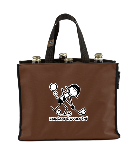 PIVO NOSIČ - taška na pivo s potiskem 1059 ZAKÁZANÉ UVOLNĚNÍ v barvě BROWN SUGAR