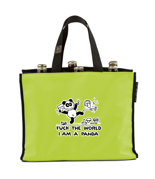 PIVO NOSIČ - taška na pivo s potiskem 1060 I AM A PANDA v barvě GREEN LIMET