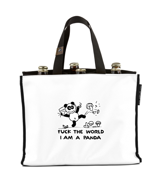 PIVO NOSIČ - taška na pivo s potiskem 1060 I AM A PANDA v barvě WHITE
