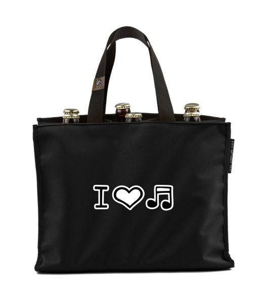 PIVO NOSIČ - taška na pivo s potiskem 1067 I LOVE MUSIC v barvě BLACK